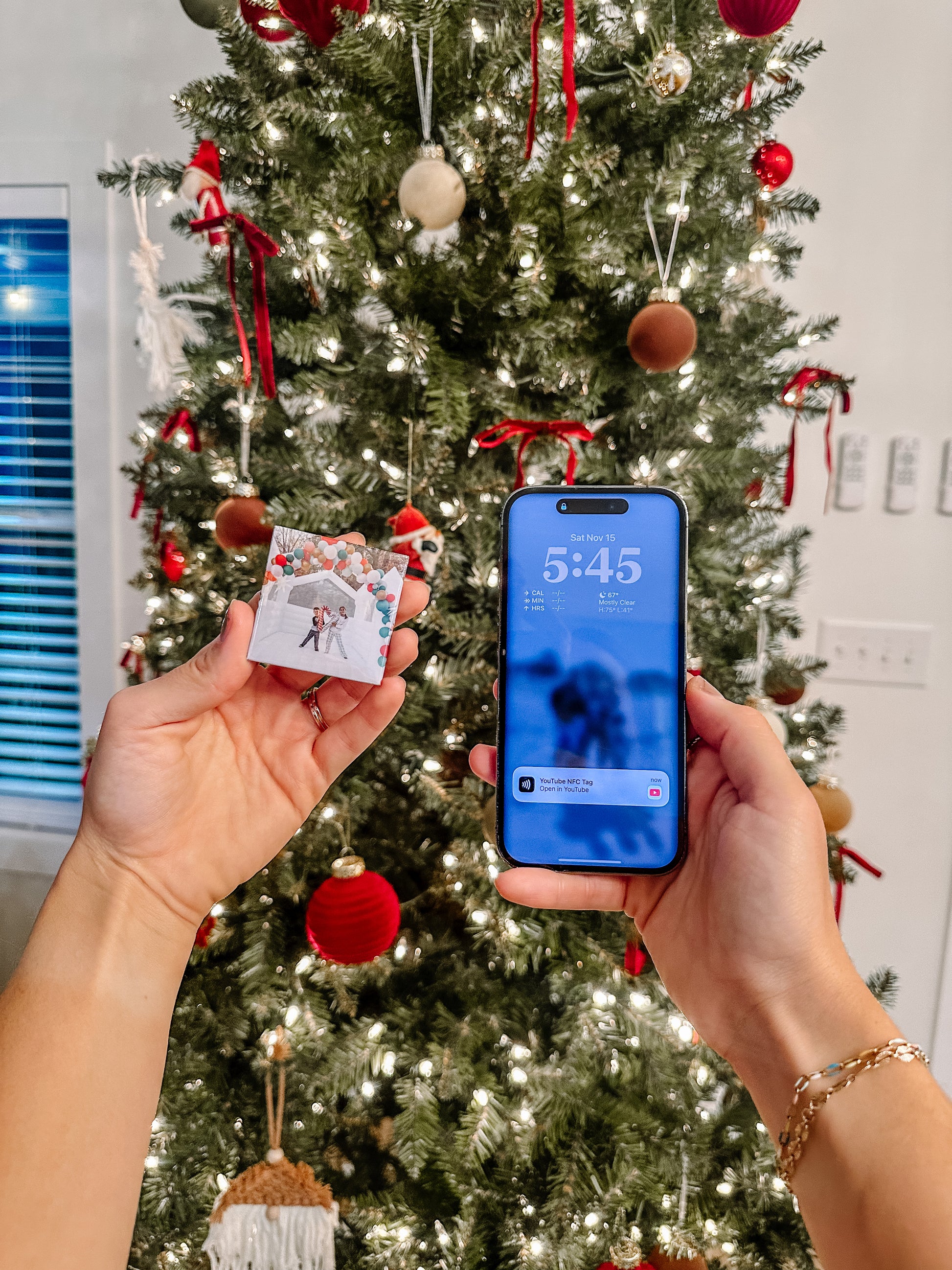 You'll record a video saying a heartfelt Christmas message for your friends and family and we will take that video and turn it into a link that can be accessed any time a phone is tapped against the magnet!
